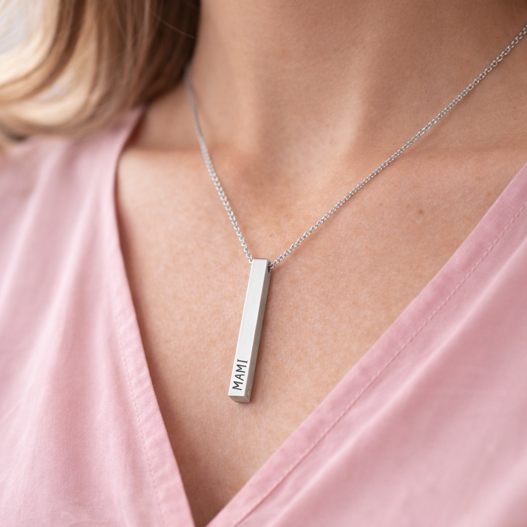 Esta gargantilla personalizada de acero inoxidable está pensada para llevar muy cerca del corazón un nombre, una palabra o una fecha importante. Un detalle sencillo, elegante y lleno de significado, grabado a láser con mimo en nuestro taller.